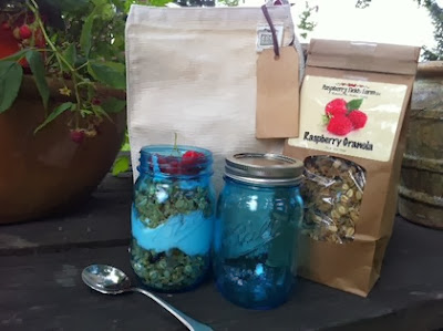 Just leave a comment in this Comment Section and you'll be automatically entered to win the eco-friendly lunch bag, mason jar (who doesn't love those!), and delicious granola from Raspberry Fields Farm! Good luck!