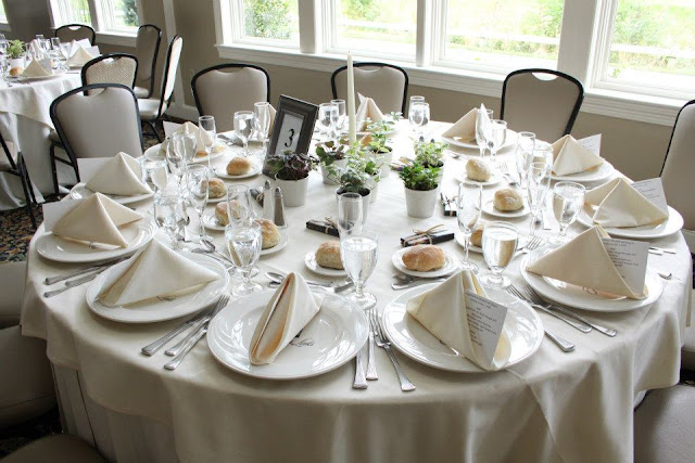 | (c) HVG Ikea pots and houseplants plus a white taper candle made for a really easy and affordable centerpiece. Guests loved taking the centerpieces home! |
