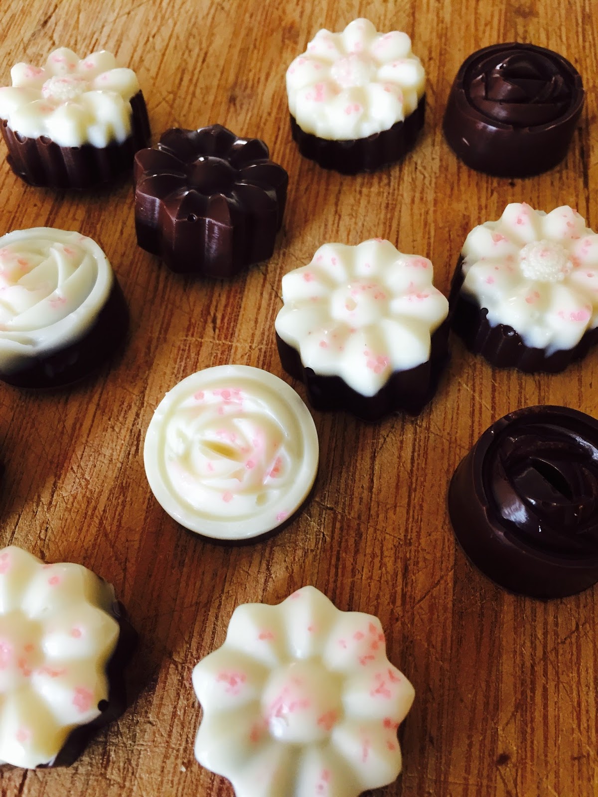 4. Pop your chocolates out of the mold and into a cellophane bag or small jar. Tie with a pretty ribbon and viola!